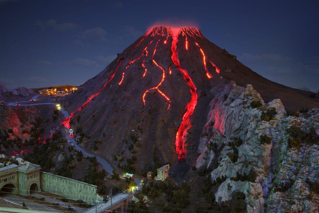 Nun sorgt ein Dauerförderbad und eine clevere Beleuchtung dafür, den Effekt fließender Lava zu erzeugen, der den Vulkan bei Nacht zu einem spektakulären Anblick macht. Aber auch sonst hat der Italien-Abschnitt mit Rom, der Toskana und mehr als 100 Zügen einiges zu bieten.