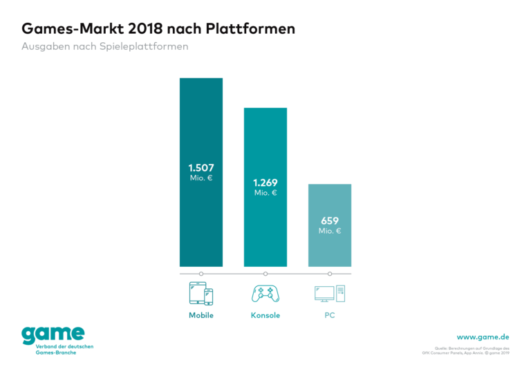 Der Mobile-Markt lockt damit, vermeintlich günstiger zu sein. Ein großer Teil der Spiele, vor allem die Top-„Seller“ sind kostenlos und finanzieren sich über Werbung, Mikrotransaktionen oder in einigen Fällen auch beides. Trotzdem führen Mobile Games auch beim Umsatz mit rund 1,5 Milliarden Euro. Auch hier ist das Smartphone die beliebteste Spieleplattform. Der game-Verband spricht dabei nur von Spiele-Apps und In-App-Käufen, weshalb die Werbeeinnahmen dabei offenbar noch außen vor sind. Auf den Konsolenmarkt fallen immerhin fast 1,3 Milliarden Euro durch Games, In-Game-Käufe, Abonnements und Online-Dienste an. Dazu gehören also auch die kostenpflichtigen Mitgliedschaften, um Onlinefunktionen der Konsolen in Anspruch nehmen zu können. Der PC liegt mit 659 Millionen Euro Umsatz deutlich zurück. Bei diesen Zahlen wundert es nicht, dass mittlerweile auch traditionsreiche PC-Entwickler wie Blizzard ihren Fuß in den Mobile-Markt setzen.