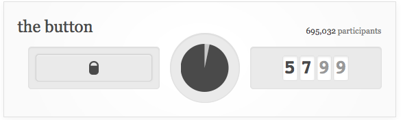 WARNING: #thebutton has 29.0 seconds left with 695,008 participants and is being pressed once every 10.91 seconds @reddit — r/thebutton (@redditbutton) 11. April 2015