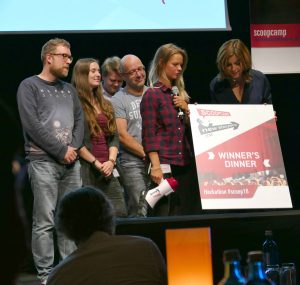 Nach der Mittagspause fand dann die Abstimmung des scoopcamp-Hackathons statt, dieser wurde gemeinsam mit dem next media accelerator und der Hamburg Media School ausgeführt. Zuerst stellten die drei Hackathon-Teams unter der Leitung von Klaus Weinmaier und Meinolf Ellers ihre Projekte vor.