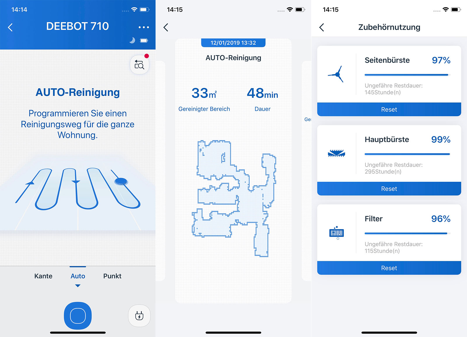 Als smartes Gerät verfügt der Ecovacs Deebot 710 natürlich auch über eine eigene App, ist ja Ehrensache. Ecovacs Home ist für Android-Smartphones und iPhones erhältlich, aber nicht für die Bildschirme von Tablets angepasst. Die App funktioniert deutlich besser als diejenige, die wir einst mit dem Deebot R95 verwendet haben. Sie ist übersichtlich aufgebaut, reagiert schnell und läuft stabil.