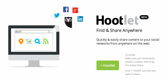 Firefox bietet z.B. mit dem kleinen Papierflieger Knopf einen sehr bequemen Modus, die aktuelle Seite einfach zu teilen. Dazu kann man diverse Dienste hinzufügen. Die Mobilvarianten (ich kenne nur die Android Versionen) von Firefox und Chrome, haben jeweils integrierte Sharing Optionen. Auf Mobilgeräten ist tatsächlich schon seit Jahren üblich, nicht in Websites integrierte Sharing Buttons zu nutzen, sondern die jeweilige Funktion der Oberfläche des Betriebssystems bzw. des Browsers (Browser kann auch Pocket sein, oder eine beliebige andere App, z.B. die der Tageszeitung der Wahl). Auch bei Chrome ist mit das auf dem Desktop aktuell nur als Extension bekannt. Woanders findet man diesen Ansatz aber schon länger. Der Social Media Manager Marktführer Hootsuite beispielsweise bietet mit dem “Hootlet“ einen Browser Button an, mit dem man Inhalte schnell in diverse Kanäle teilen kann, ohne dafür sein Hootsuite Dashboard aufrufen zu müssen (eine Funktion die ich selbst zu wenig nutze).