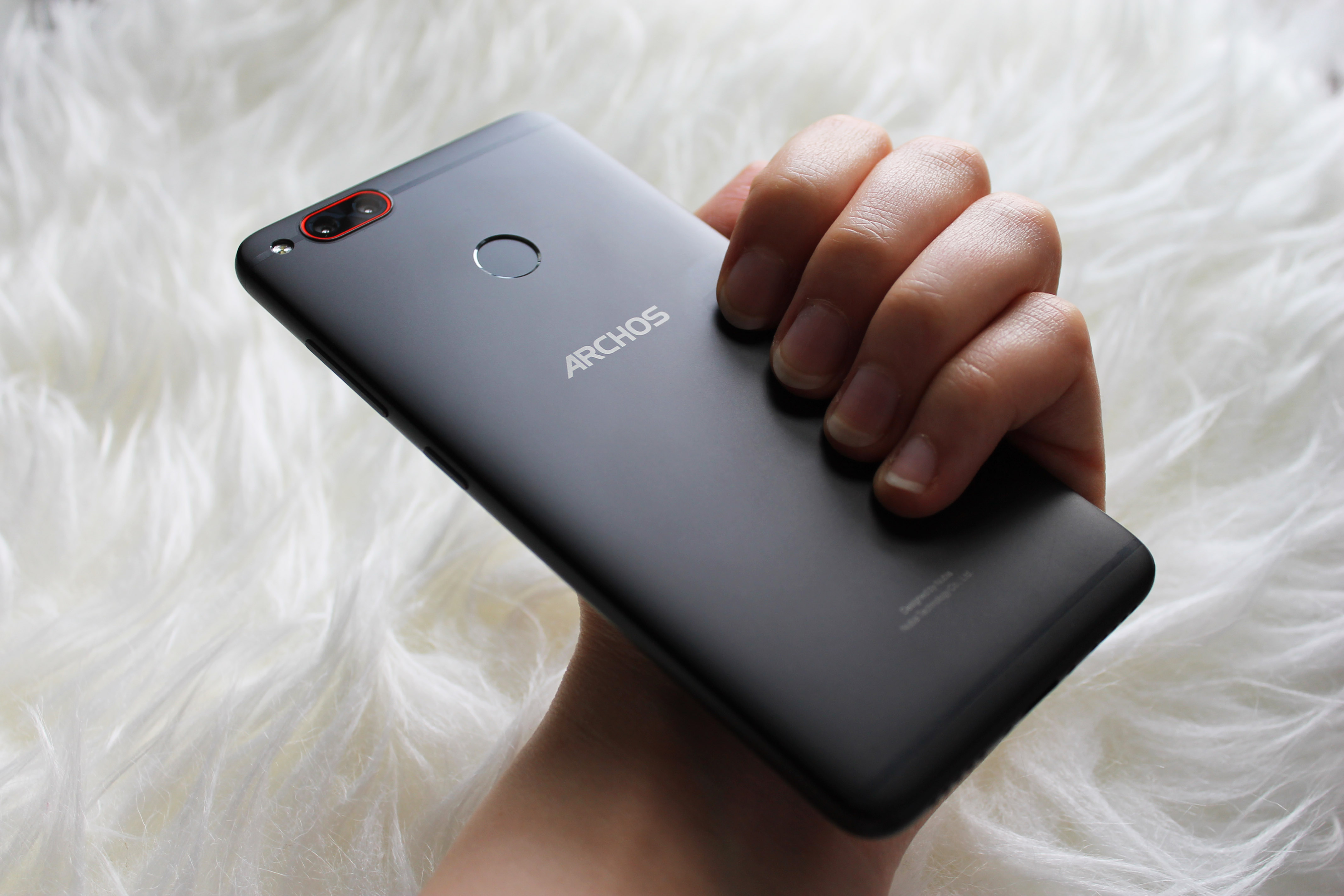 Der Fingerabdrucksensor reagiert sehr gut und besonders schnell. Ich empfinde ihn als besonders ergonomisch angebracht, so dass der Zeigefinger auch bei kleinen Händen automatisch aufliegt. Die Werkseinstellung bietet hierüber eine Screenshot-Funktion an, die ich aber ständig aus Versehen ausgelöst habe. Das lässt sich ebenfalls in den Einstellungen ändern. Das Archos Diamond Alpha kommt bereits mit 64 GB internem Speicher, der sich aber auf Wunsch per Micro-SD-Karte erweitern lässt. Oder aber man entscheidet sich dazu, das Smartphone mit zwei Nano SIM-Karten zu nutzen, die Option bietet das Diamond Alpha ebenfalls.
