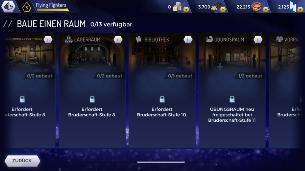 Gleich zu Beginn des Spieles wird man in die „Kunst“ des Basis-bauen eingeführt. Damit ihr all eure Assassine unter ein Dach bekommt, braucht ihr Schlafräume, Lagerräume und Vorratsräume. Um eure Helden zu trainieren, könnt ihr Übungsräume freischalten oder Bibliotheken anlegen. Mit steigender Stufe schaltet ihr immer neue Erweiterungen für eure Basis frei. Ersteht diese ganz einfach, indem ihr Rohmaterialien wie Stein und Holz bei entsprechenden Missionen ergattert. Somit wird nach und nach aus eurer kleinen Bruchbude ein prachtvolles Assassinen-Versteck.