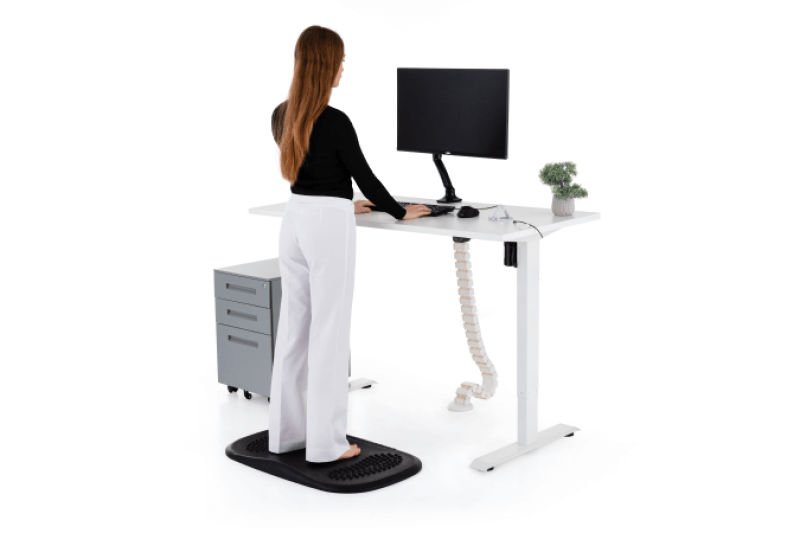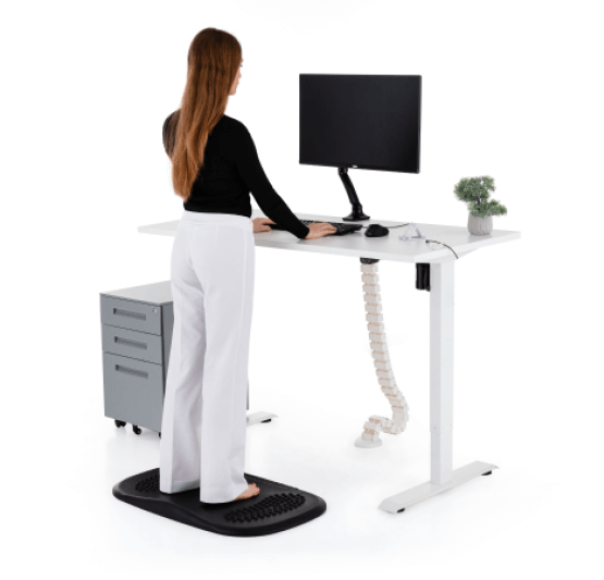 Menschen, die häufiger oder grundsätzlich im Stehen arbeiten, können Ihrer Gesundheit mit einer ergonomischen Stehmatte etwas Gutes tun. Eine nachgiebige Anti-Ermüdungsmatte schont Wirbelsäule, Hüfte, Knie und Knöchel. Mikrobewegungen verbessern die Durchblutung und stimulieren die Muskulatur.