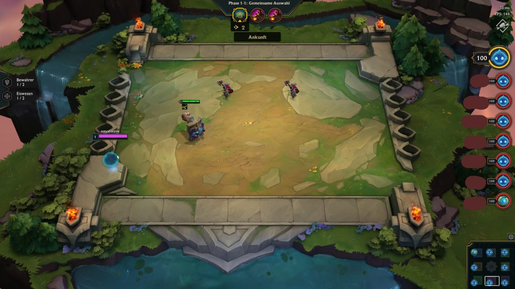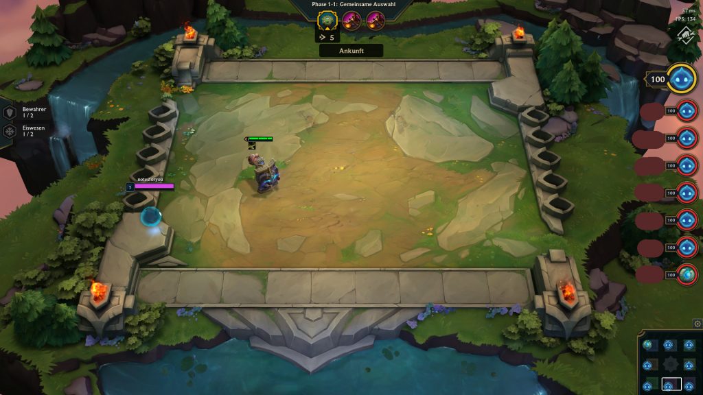 Dementsprechend wurde ich bei meinem ersten Fight auch Letzte. Bei Teamfight Tactics treten nämlich immer acht Spieler in einer Art „Blitzturnier“ gegeneinander an. Jeder gegen jeden, bis man seine gesamten Lebenspunkte verloren hat. Nach jedem Match zieht man wieder gegen einen anderen der insgesamt sieben Gegenspieler in die Schlacht. Und hat wieder neue Münzen für das Ummodeln seiner Aufstellung an Champions.