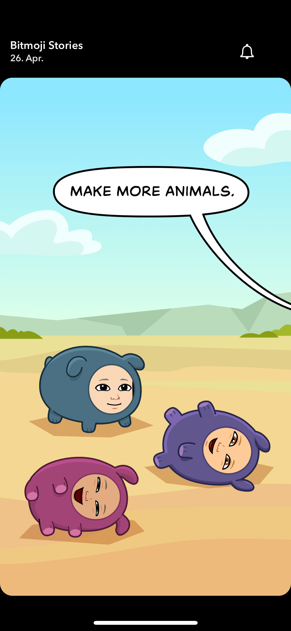 Allerdings ist es der Inhalt dieser Stories, der mich stocken lässt. So handeln viele dieser „Kurgeschichten“ eigentlich nur von absurden Situationen, in denen euer Bitmoji zum Beispiel in einem Walrosskostüm herumhüpft oder sich als Nilpferd darüber beschwert, dass es sich fortpflanzen muss. Zugegeben erschließt sich mir nicht so ganz, was genau an diesen Geschichten einen Mehrwert bieten soll.