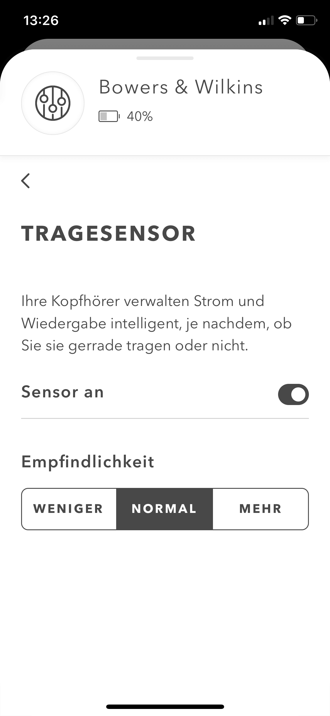 Der PX7 ist direkt aus dem Karton voll einsatzfähig und weckt gar keinen Bedarf, ihn per App zu tunen. Trotzdem hat der Hersteller eine kostenlose Anwendung namens „Bowers & Wilkins Headphones“ für Android und iOS am Start.
