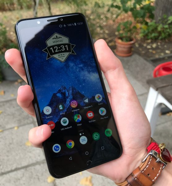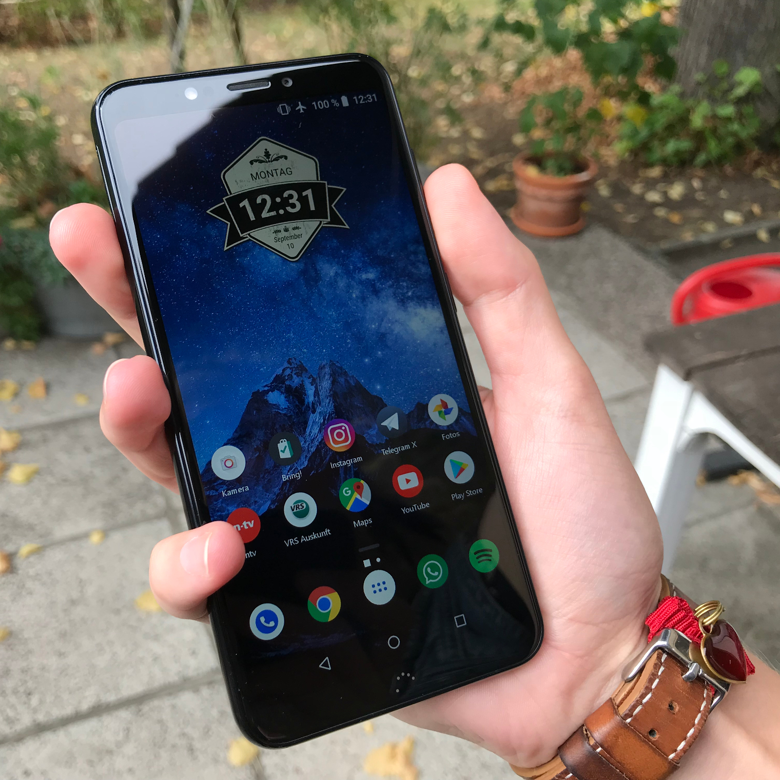 Auch das Display überzeugt uns. Zwar handelt es sich nur um ein IPS-Panel, doch mit einer Auflösung von 720 mal 1440 Pixeln und einer Helligkeit von 450 Nits ist es ausreichend scharf und hell. Außerdem sind die Displayecken leicht abgerundet, wodurch das Display besser zu den Rundungen des Gerätes passt und das Handy hochwertiger aussehen lässt. Andere Hersteller wie Nokia oder Samsung bieten diese Extras nicht in dieser Preisklasse.