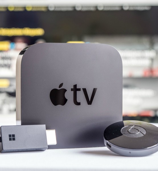 Statt sich mit Beamern oder gar Overhead-Projektoren abzumühen, werden Inhalte in modernen Büros, Empfangsbereichen und Konferenzräumen heutzutage drahtlos vom Mobilgerät oder Rechner auf TV-Bildschirme gestreamt. WLAN-Adapter stellen den Kontakt mit den Screens her. Mit dem Microsoft Wireless Display Adapter v2, dem Apple TV 4 und dem Google Chromecast (2015) sind drei gängige Lösungen von großen Herstellern erhältlich. Für einen Praxis-Vergleich haben wir uns mit allen drei Modellen kurzgeschlossen.