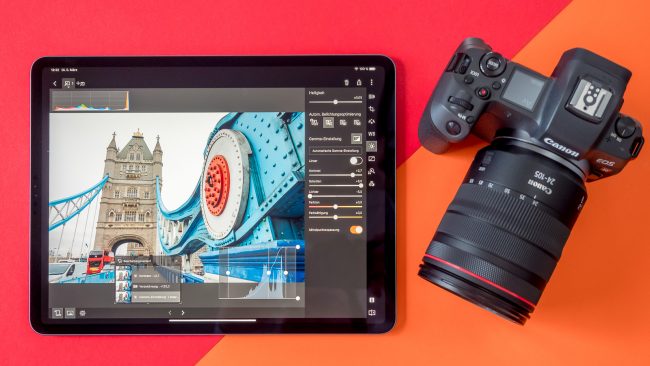Wer unterwegs Raw-Dateien aus der EOS R auf größerem Screen sichten und bearbeiten möchte, kann dies nur auf einem iPad vornehmen. Dafür hat Canon die kostenlose Software DPP Express für iOS veröffentlicht, die exklusiv mit dem neuem Raw-Format der EOS R, CR3, klarkommt.
