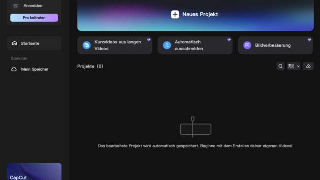 Die Oberfläche von CapCut ist übersichtlich gestaltet und ermöglicht eine intuitive Bedienung. Beim Start der App gelangen Nutzer direkt in das Hauptmenü, in dem sie neue Projekte erstellen oder gespeicherte Projekte öffnen können. Der Bearbeitungsbereich selbst ist in verschiedene Sektionen unterteilt: Die Zeitleiste am unteren Bildschirmrand erlaubt eine präzise Bearbeitung von Clips, während sich in der Mitte der Vorschau-Bereich befindet, in dem Änderungen in Echtzeit überprüft werden können. Oben im Bildschirm gibt es Schnellzugriffe auf wichtige Funktionen wie Effekte, Musik, Text und Filter. Durch die klare Struktur können sowohl Anfänger als auch erfahrene Nutzer effizient arbeiten.