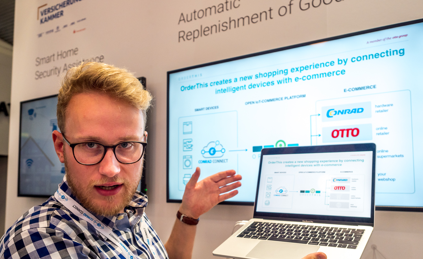 Lasse Maddey von der Otto Group erklärte uns auf der IFA 2018, wie der Dienst OrderThis zusammen mit Conrad Connect funktionieren wird. Image by Berti Kolbow-Lehradt