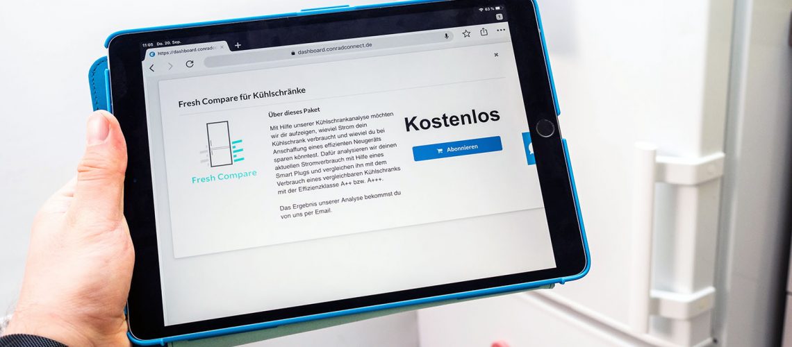 Als einer der ersten Partnerdienste ist die Stromanalyse von Fresh Energy im Conrad Connect Service Marketplace verfügbar. Vorerst kostenlos für die Nutzer misst dessen Dienstangebot Fresh Compare, wie viel Energie Geschirrspülmaschinen, Waschmaschinen und Kühlschränke verbrauchen. Anschließend errechnen Algorithmen, ob es sich um akzeptable Werte handelt und inwiefern Neuanschaffungen Geld sparen könnten. Dazu vergleicht Fresh Energy den Energieverbrauch des gemessenen Gerätes mit den Durchschnittswerten eines vergleichbaren Modells.