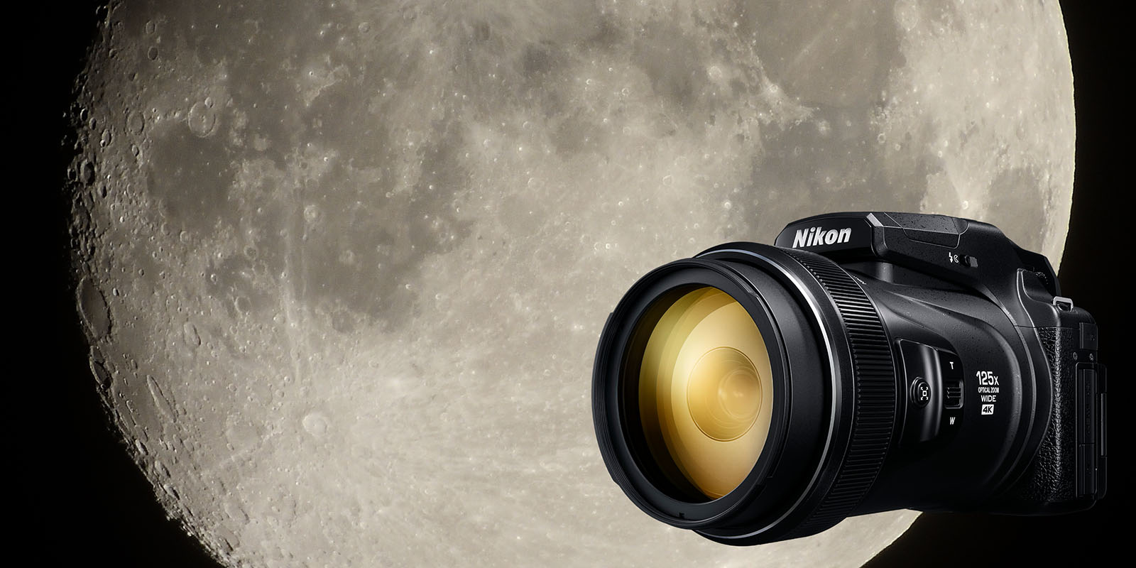 Die Coolpix P1000 ist die einzige Kompaktkamera auf dem Markt mit optischem 125-fach-Zoom. Sie ermöglicht es, Bilder von Landschaften und Objekten zu schießen, die bisher außer Reichweite waren. Zusätzlich bietet eine digitale Vergrößerung namens Dynamic Fine Zoom eine erweiterte Obergrenze von 6.000 mm. Bei anderen kompakten Digitalkameras mit kleinem Sensor liegt der Durchschnittswert bei circa 300 mm. Mit so einem Zoom kann man Krater (!) auf dem Mond aufnehmen. Am kurzen Ende bietet das Objektiv eine weitwinklige Brennweite von 24 mm (KB-äquivalent). Damit deckt es gängige Alltagsmotive und viel mehr ab.