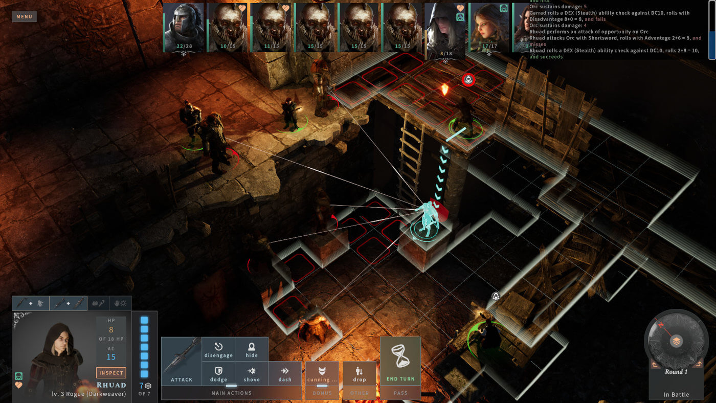 Doch auch wenn es einen Rundenmodus gibt, ist die pausierbare Echtzeit bei Wrath of the Righteous noch immer Basis für die Entwicklung. Dessen Dynamik erschwert aber gerade Zauber mit Bereichseffekten. Ein Feuerball lässt sich im Rundenmodus deutlich einfacher platzieren, weil die Gegner sich während der eigenen Aktion nicht bewegen. In Echtzeit können die Gegner zwischen Beginn des Zaubers und ankommen des Feuerballs schon ein paar Meter weiter sein.