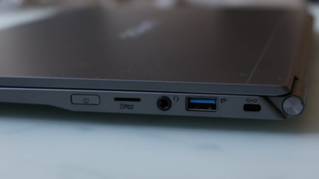 Lediglich ein Manko hat die leichte Bauweise in Bezug auf Ein- und Ausgänge dann doch. Es gibt keinen vollwertigen SD-Kartenleser. Zwar gibt es einen MicroSD-Kartenleser aber den brauche zumindest ich eigentlich nie. Auch fehlt mir zumindest für das stationäre Arbeiten doch der LAN-Anschluss. Das liegt aber in erster Linie daran, dass mein heimisches WLAN mehr als grottig ist. Bei 16,5mm Höhe ist das definitiv zu verschmerzen, zumal das U4 nicht als stationäres Gerät gedacht ist.