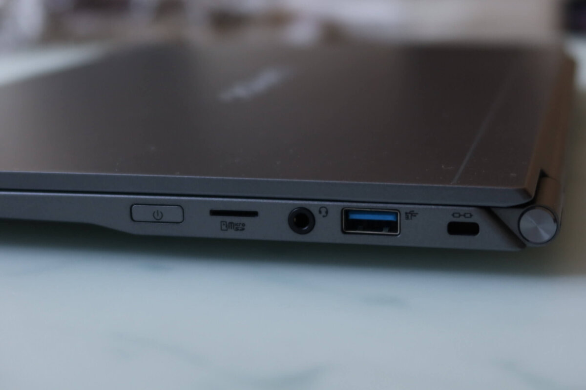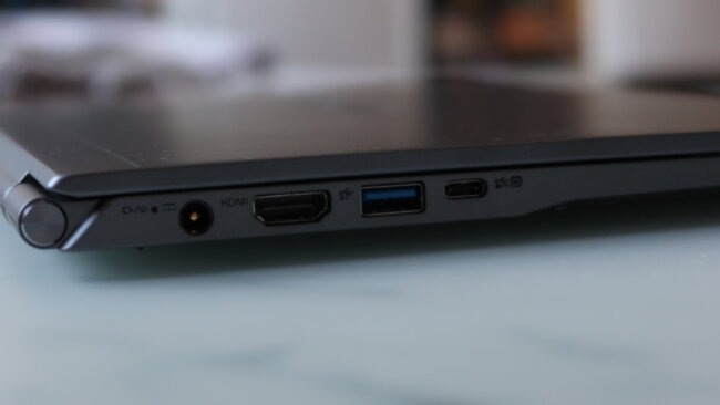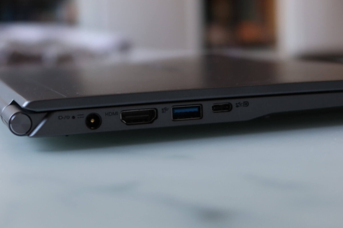 Gerade bei so einer kompakten Bauweise ist die Frage nach den Anschlüssen eine wichtige. Von anderen Herstellern, die bekannt für ihre schicken Notebooks in Aluminiumgehäuse sind, ist man das leidige Thema “Anschlüsse und Adapter” schließlich schon gewohnt. Umso erfreuter war ich, als ich das Gigabyte U4 im Test hatte. Denn das kommt mit zwei USB 3.2 Ports, einem Thunderbolt 4 (Typ-C)-Anschluss sowie einem HDMI 2.0 inklusive HDCP. Damit ist das Notebook für die meisten Bereiche bestens gewappnet. Auch ein Audio Kombi-Anschluss ist vorhanden, über den ihr ein Headset verbinden könnt.