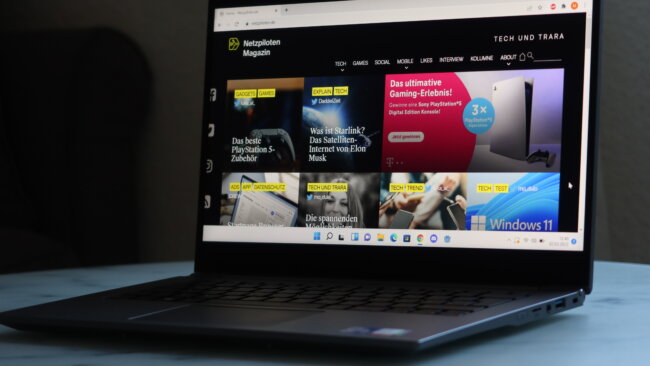 Das 14 Zoll-Display des Ultrabooks löst mit Full HD auf und erfüllt damit die Anforderungen aller gängigen Office-Tätigkeiten. Weiterhin stellt es Farben sehr gut dar und überzeugt in erster Linie durch seine Helligkeit. Daher überzeugte mich das Display vor allem bei der Arbeit im Sonnenlicht – nicht zuletzt auch, weil es nicht stark spiegelt und somit gut lesbar bleibt.