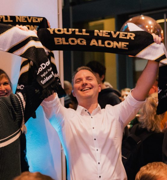 Über das Event im vergangenen Jahr berichteten nicht „bloß“ Heute und Tagesthemen, selbst die Washington Post schrieb staunend. Entsprechend kuschelig war das Gedränge am Montagabend am Veranstaltungsort. Geschätzte 350 Gäste johlten den Nominierten und Gewinner*innen auf der kleinen Bühne zu. Viele hatten sich den von Sponsor GoDaddy am Empfang verteilten Fan-Schal mit aufgesticktem Motto You’ll never blog alone umgehängt.