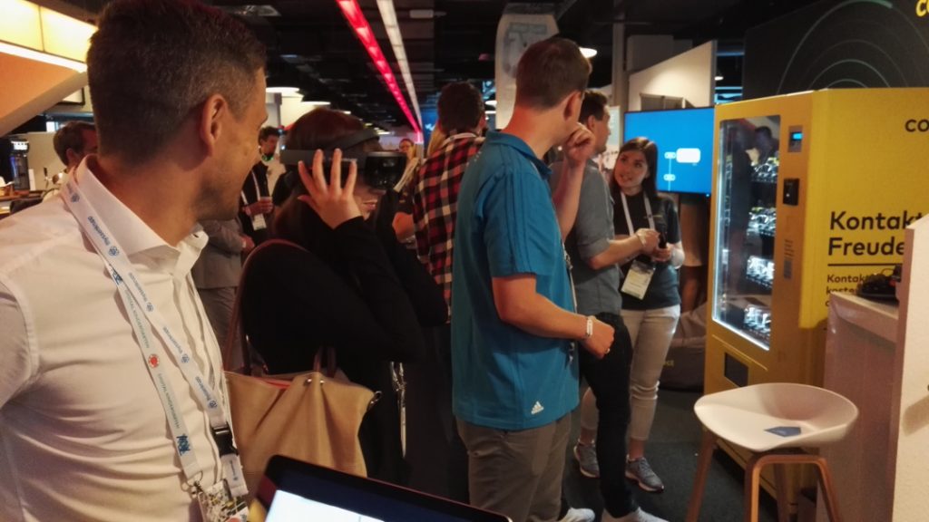 Was die charmante Konferenz zu einem digitalen Kindergarten machte, waren natürlich die unzähligen Gelegenheiten, bei denen man selbst Hand anlegen durfte. Ganz vorne dabei: Virtual Reality und Augmented Reality. Uns hat besonders der VR-Kicker gefallen oder die mit einem Geruchsmodul erweiterte VR-Brille, mit der man virtuell an Blumen riechen konnte.