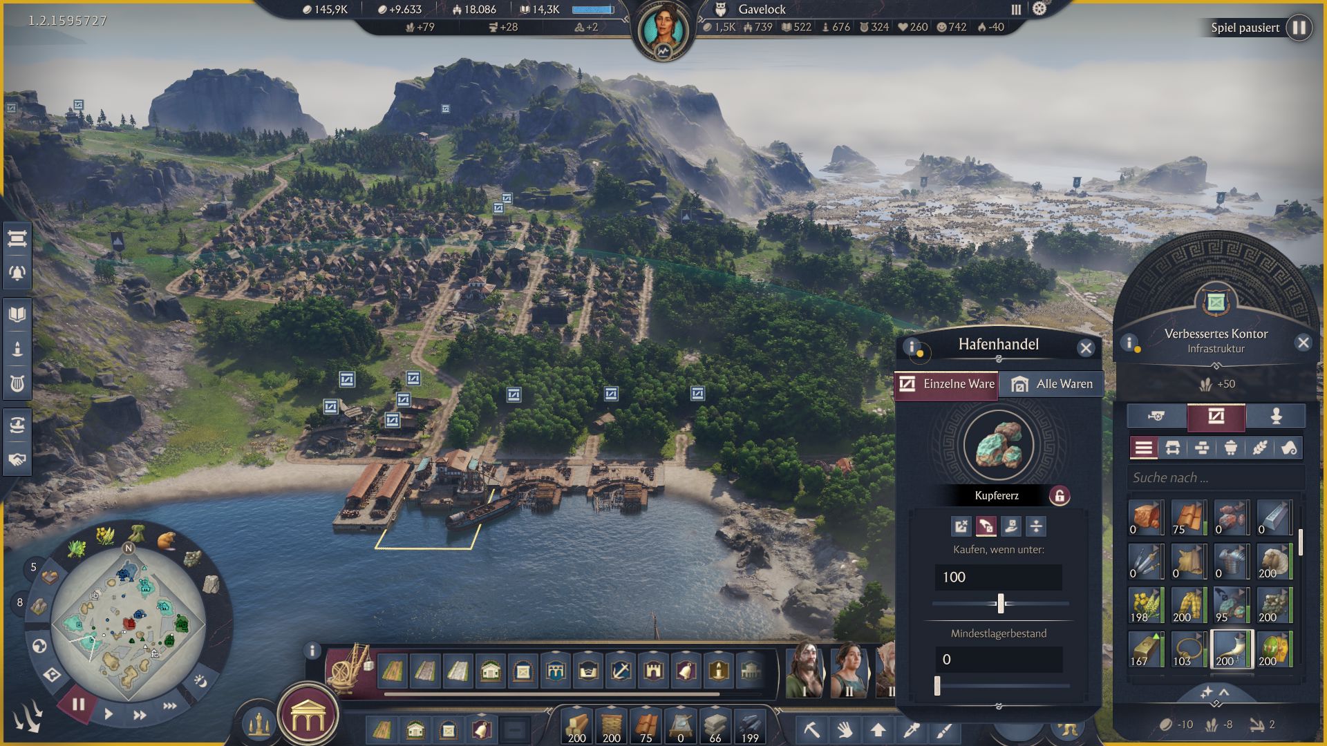 Ich nutze den passiven Handel vor allem für Rohprodukte aus dem Bergbau. Kupfer oder Zinn sind beispielsweise unglaublich günstig, sodass man nicht auf Inseln mit passenden Ressourcen angewiesen ist. Auch wenn eine komplexere Kette eine Fruchtbarkeit auslässt, bietet sich ein Import dieser Resource an, um den Import per Handelsroute zu verzichten.