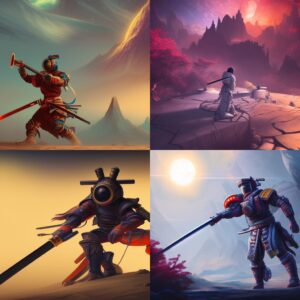 Über die Schöpfungshöhe lässt sich natürlich trotzdem streiten. Viele Bilder haben einen surrealen Touch, gerade weil das Tool es nicht immer besser weiß. Außerdem zeigen auch die Stile, dass es gewissermaßen darauf trainiert ist das gelernte nachzuahmen. Trotzdem ist es beeindruckend und auch wir haben es natürlich ausprobiert. Hier unsere Ergebnisse für „Space Samurai“ und „Webpilot“: