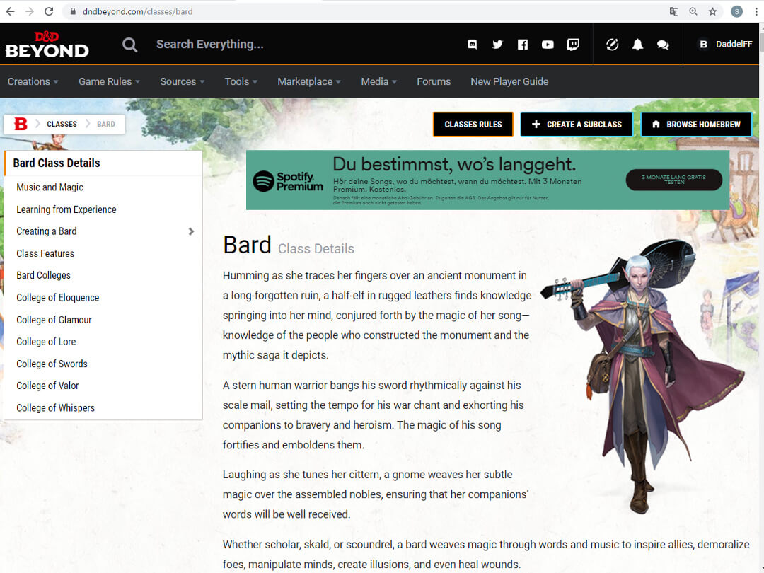 Ihr könnt jede Klasse und Rasse in einer übersichlichen Ansicht anschauen. Das enthält eine Beschreibung der Klasse mit ihren Besonderheiten, aber auch Spielwerte und Fähigkeiten. Ebenso gut sortiert sind auch Zauber, Monster und Items zu finden. Dabei sind die Inhalte aus den Basis-Regelwerken kostenlos verfügbar. Diese Regelbücher lassen sich auch in ihrer ursprünglichen Form mit einigen Zusatzinformationen zu Mechaniken lesen. Das Basisregelwerk ist kostenlos, alle Erweiterungen lassen sich sowohl komplett, als auch Abschnittsweise erstehen, falls man etwa nur an einem bestimmten Volk aus dem Buch interessiert ist.