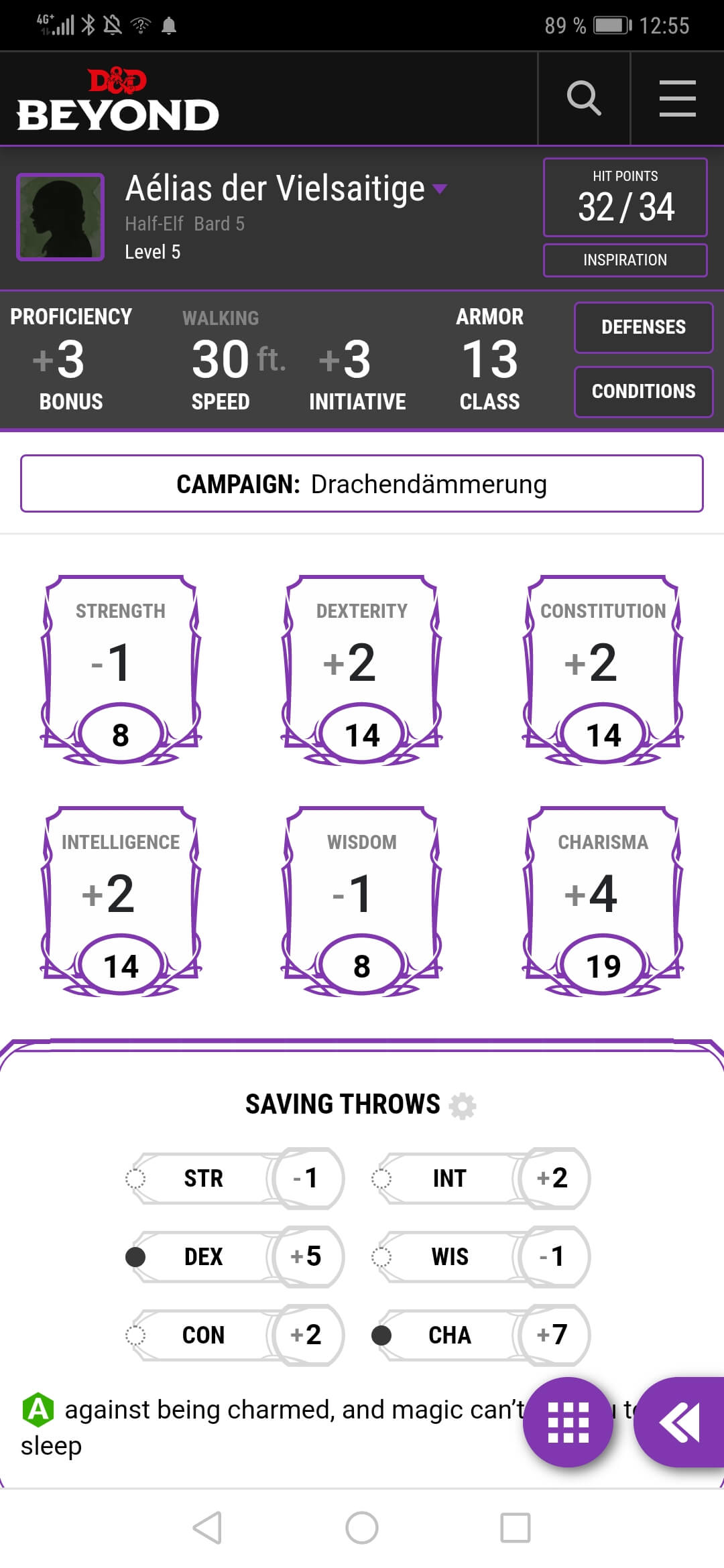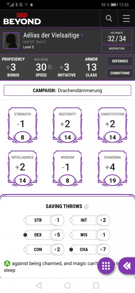 Leider ist der Charakterbogen noch nicht Teil der D&D Beyond App. Dafür ist die die Mobilansicht der Seite so gut optimiert, dass sie einem selbst wie eine App vorkommt. Stift und Papier haben aber zumindest für Notizen noch ihre Daseinsberechtigung. Und meine Würfel werde ich so schnell nicht digitalisieren.