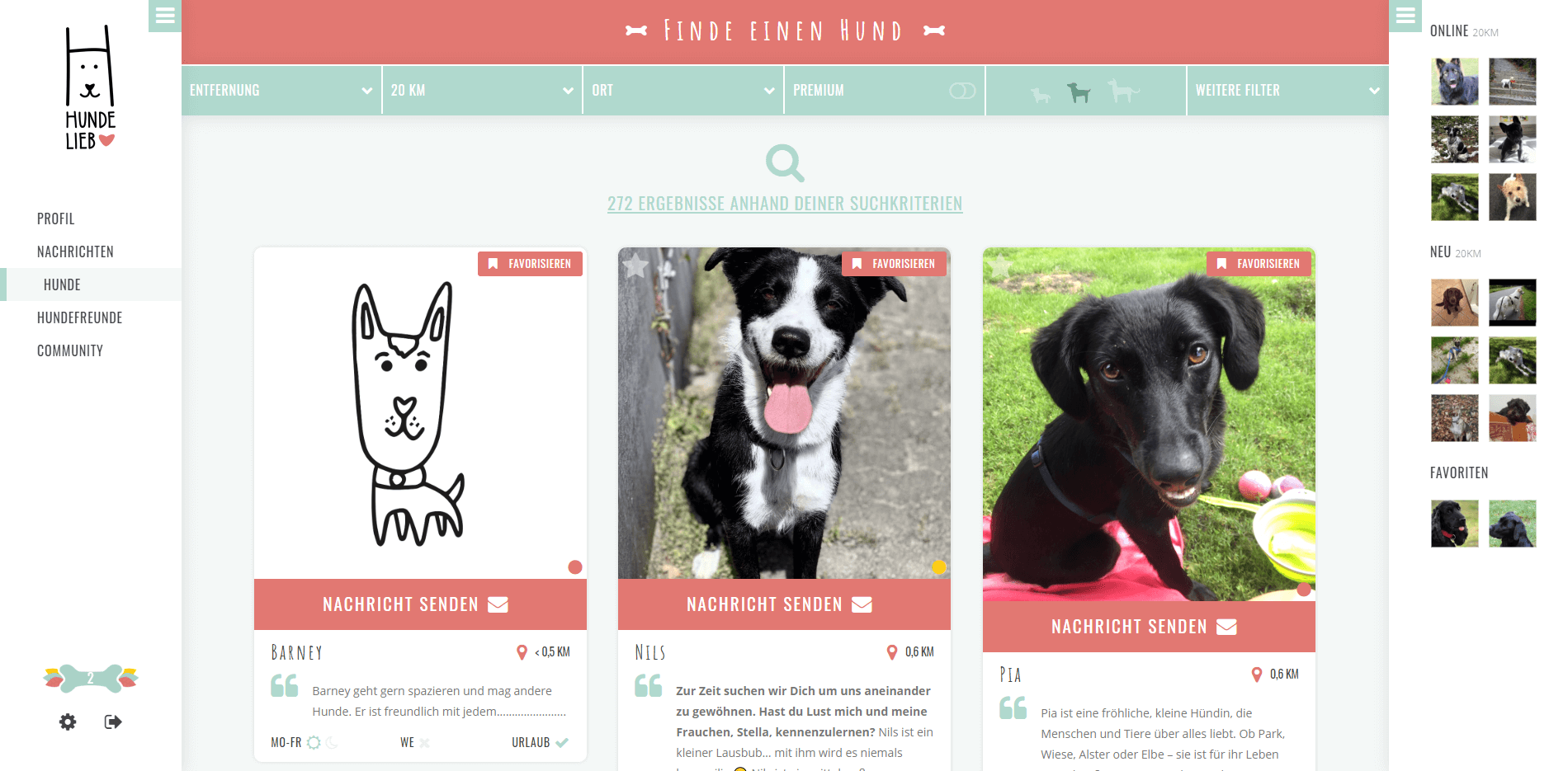 Auch Hundebesitzer geben auf der Dogsharing-Plattform einige Informationen zu ihren Hunden. Ob sie mit Kindern, Katzen und anderen Hunden klar kommen oder ob sie kastriert und versichert sind. In jedem Fall solltet ihr euer Profil mit einer Beschreibung versehen, in der ihr entweder euch und euer Leben oder den Hund beschreibt. Zusätzlich bietet Hundelieb die Möglichkeit kurze Videos von eurem Hund hochzuladen, was hilft, sich ein Bild von den Hunden zu machen!