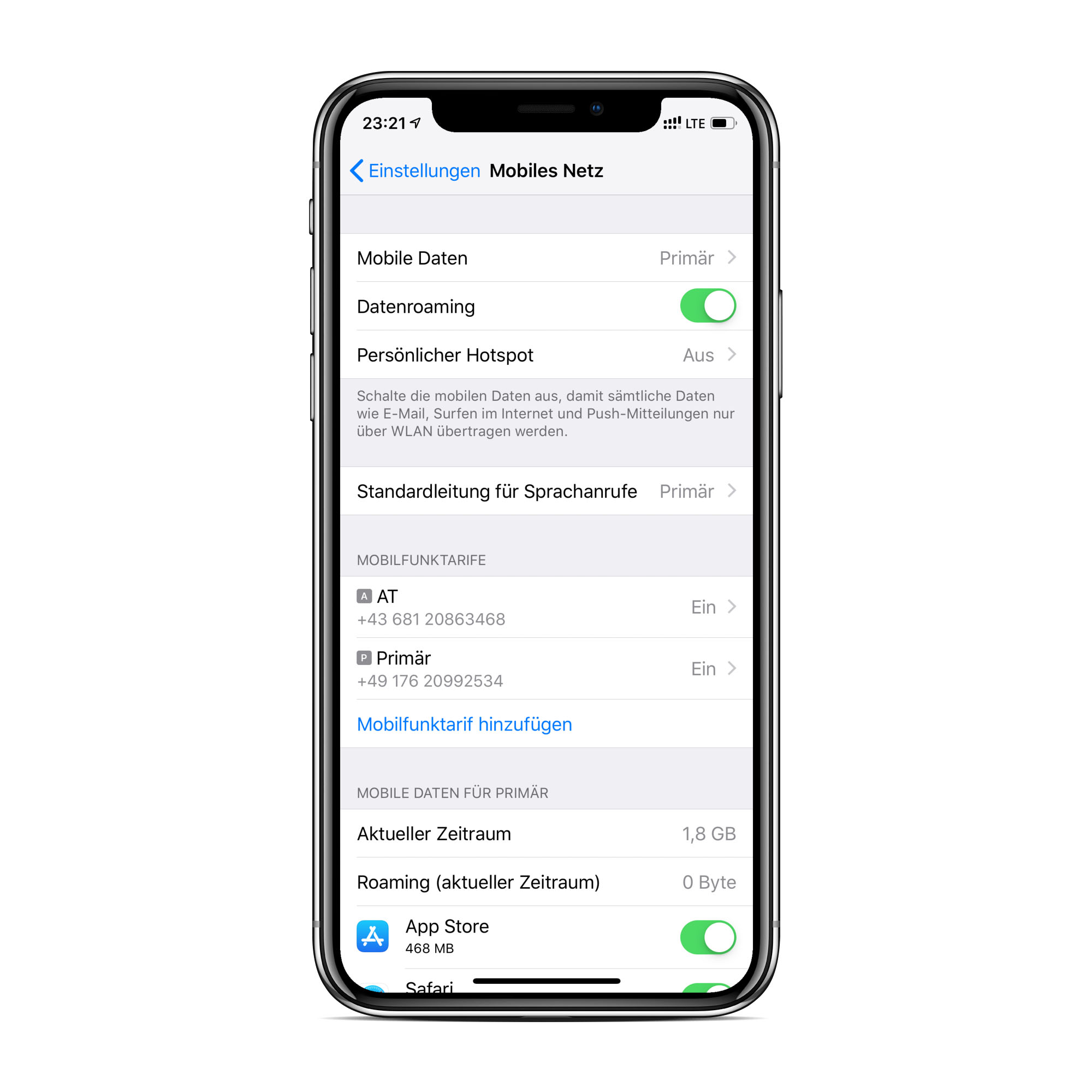 Gründe um zwei SIM-Karten zu verwenden, gibt es viele. So könnt ihr beispielsweise eine private und eine geschäftliche Telefonnummer in einem Gerät kombinieren. Oder ihr profitiert auf Reisen außerhalb der EU von den günstigeren Gebühren einer lokale SIM-Karte und seid trotzdem noch auf eurer bekannten Handynummer erreichbar. Das iPhone kann dennoch über beide Telefonnummern telefonieren und SMS schreiben. Mobile Daten lassen sich jedoch nur mit einer Karte versenden und empfangen.