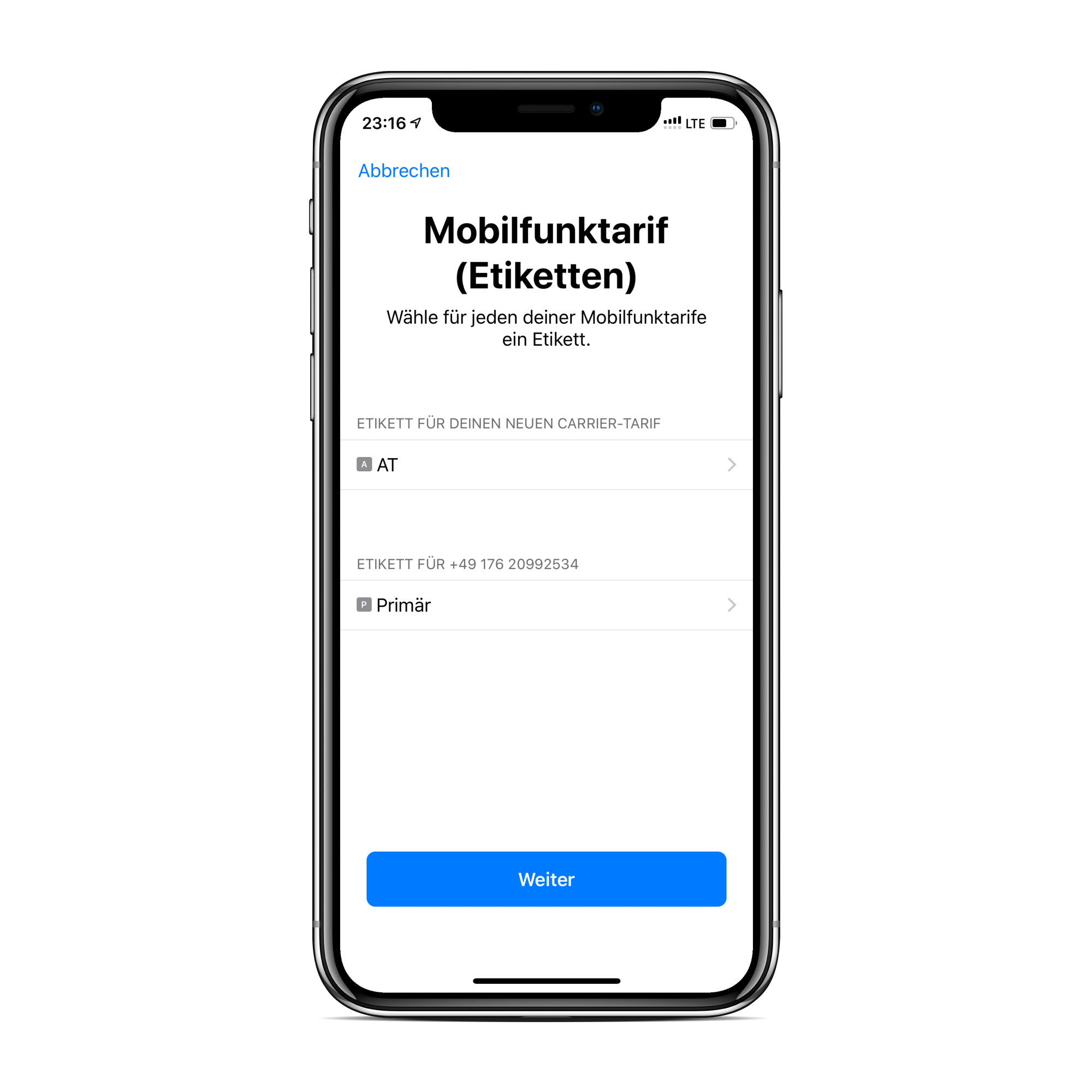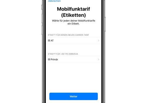 Wenn ihr euch dafür entscheidet, zwei SIM-Karten im iPhone zu verwenden, bietet euch iOS Hilfestellungen, um Verwechslungen zu vermeiden. So erhaltet ihr nach dem Einrichten der zweiten SIM-Karte die Möglichkeit, Etiketten zu vergeben. Anhand dieser erkennt ihr stets, welche Karte das Telefon gerade verwendet.