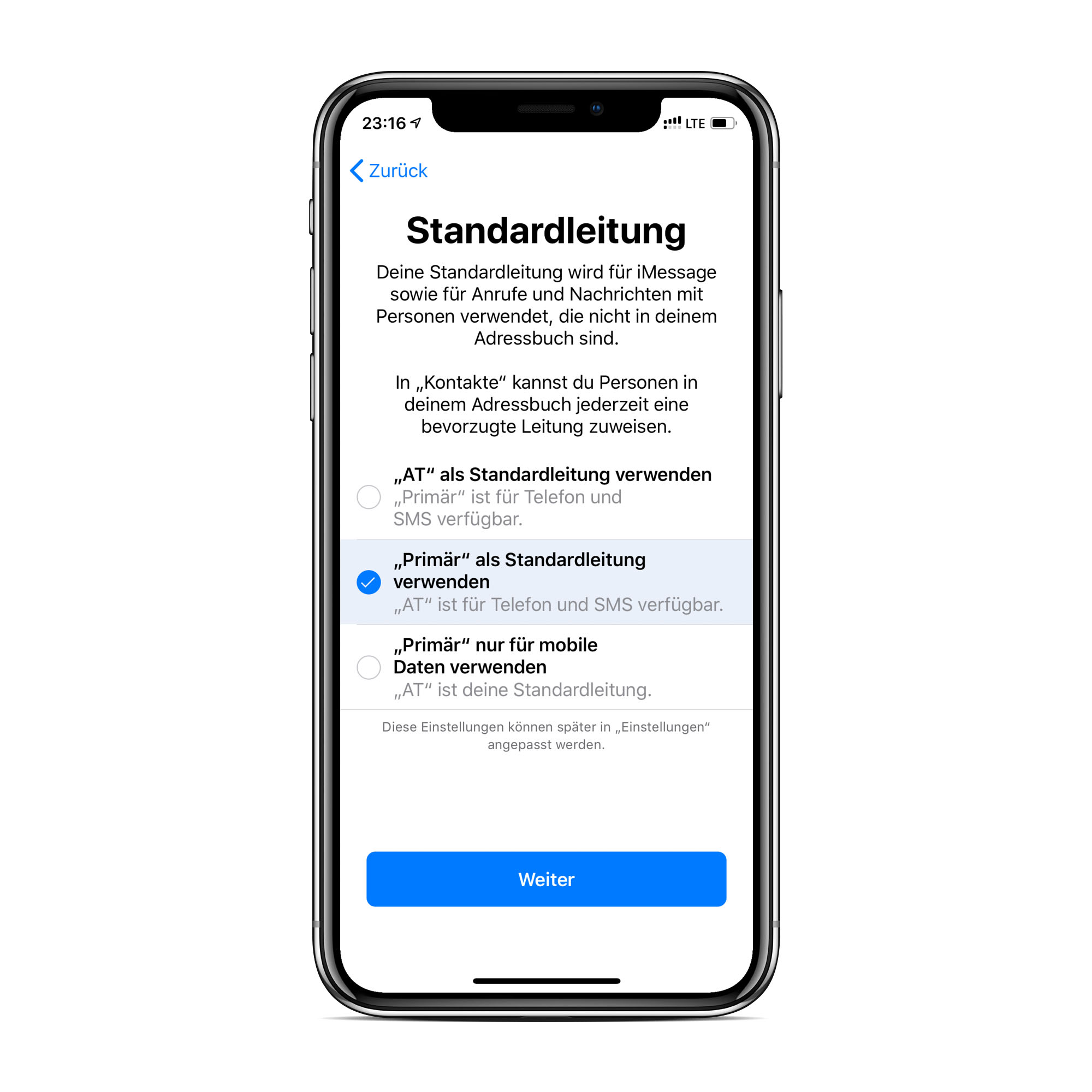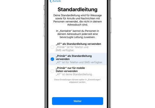 Im nächsten Schritt wählt ihr aus, welche der beiden Karten standardmäßig für mobile Daten sowie ausgehende Anrufe und SMS zum Einsatz kommt. Die andere Karte bleibt dann trotzdem für eingehende Anrufe und SMS verfügbar. Solltet ihr euch gerade im Telefonat auf eurer Hauptkarte befinden, wenn jemand die andere Nummer anruft, antwortet dort die Mailbox. Dabei lassen sich alle anfangs festgelegten Einstellungen später unter dem Punkt „mobiles Netz“ beliebig ändern.