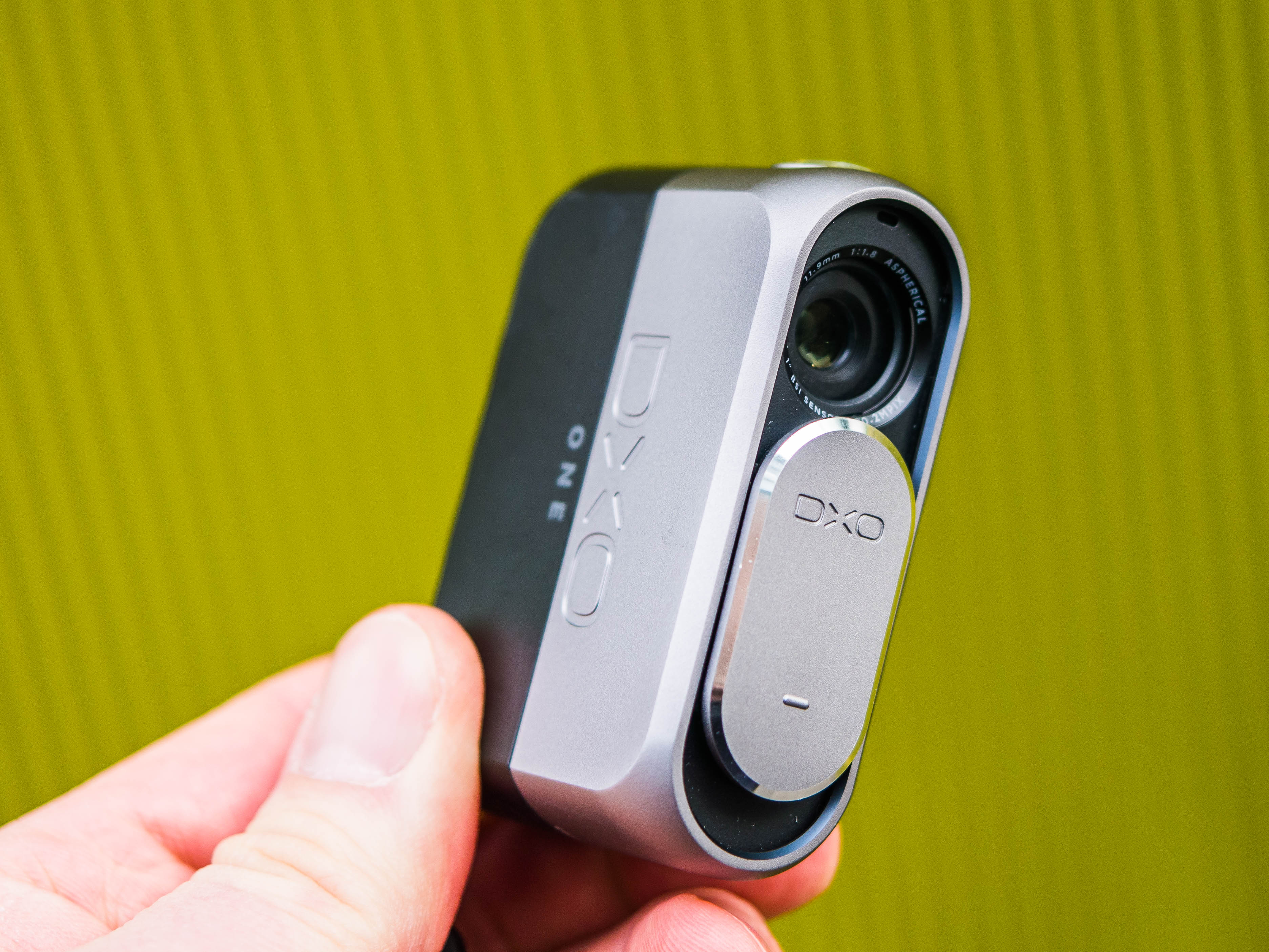 Was in ihr steckt, sieht man der DxO One von außen nicht an. Aber ein Hingucker ist Kamera auf jeden Fall. Das rechteckige Gehäuse aus Kunststoff und Aluminium ist so edel designt und hochwertig verarbeitet, wie Apple-Nutzer es erwarten. Stylische Akzente setzen die geschliffenen Kanten um Objektivdeckel und Auslöseknopf. Die Formsprache ist angenehm minimalistisch.
