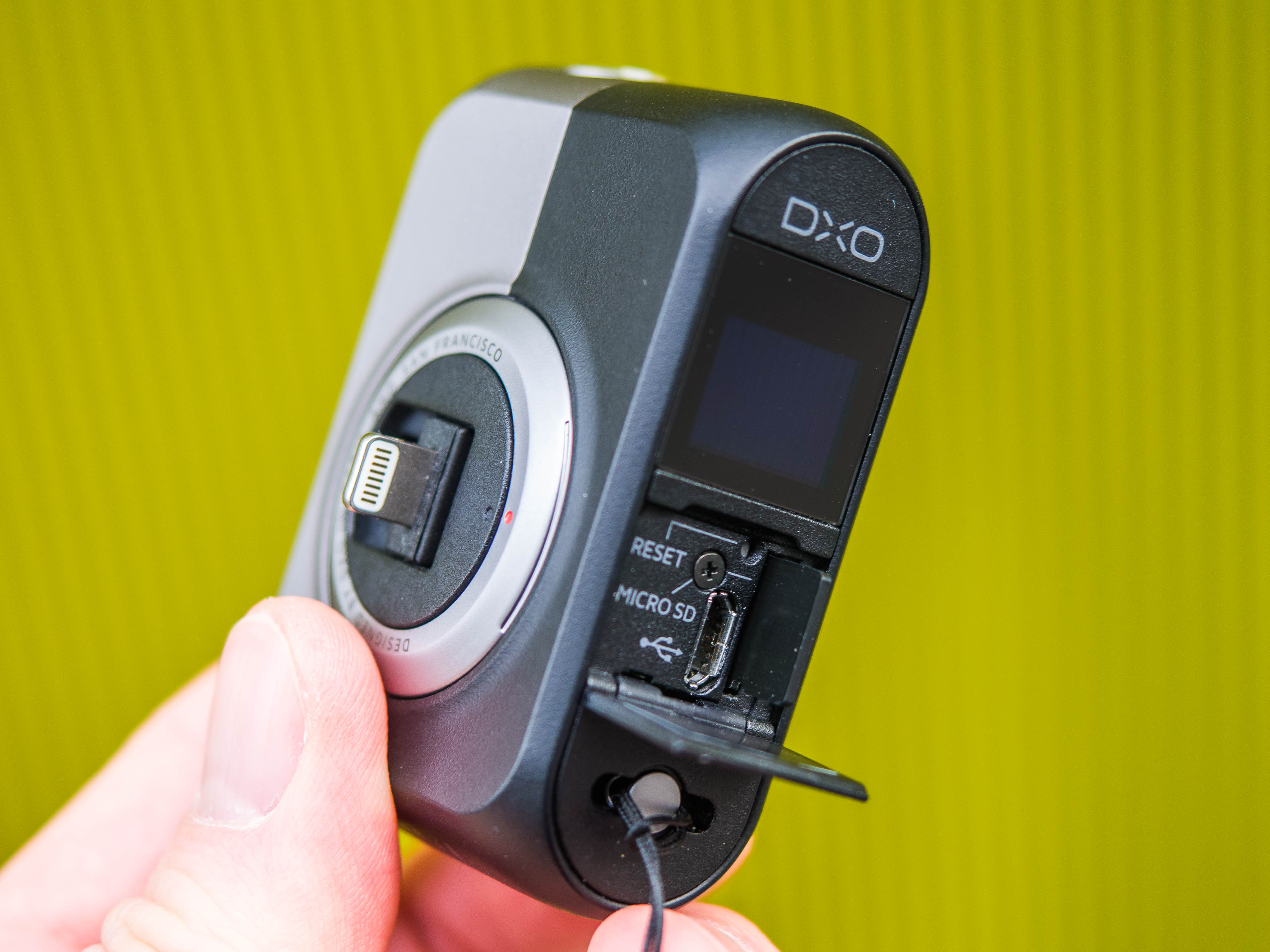 Als eigenständiger Fotoapparat ohne Smartphone lässt sich die DxOne tatsächlich verwenden. Insofern passt der Vergleich mit der Kompaktkamera. Mit dem grobpixeligen, monochromen Kleinstdisplay auf der Rückseite kann ich das Motiv zur Not auch ohne Smartphone anvisieren. Dank eines eigenen Akkus, den ich via microUSB lade, ist die DxO One nicht auf die Energie des iPhone angewiesen. Mittels des microSD-Kartenschachts lassen sich Aufnahmen ohne Umweg mit dem Computer austauschen. Eine 8-GB-große Karte gehört sogar zum Lieferumfang.