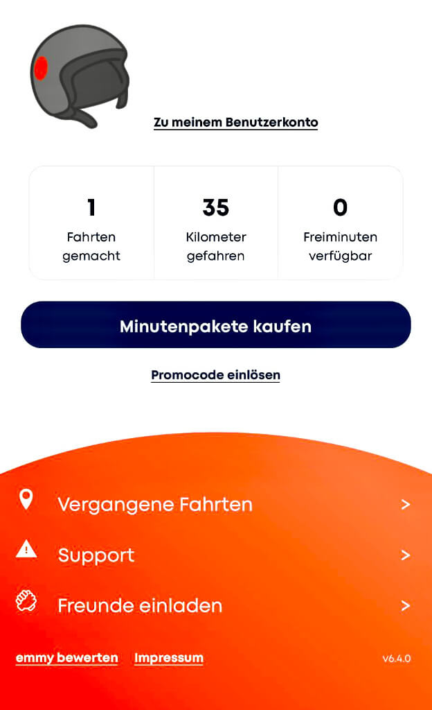 Das Verfahren ist bei allen Anbietern ähnlich: Man installiert die App, registriert sich über diese, bestätigt die Anmeldung per E-Mail und legitimiert sich mit einem Foto oder Video seines Führerscheins, (hierbei sollte es ein Euro-Führerschein sein). Es kann beim automatischen Verifizieren des Führerscheins schonmal zu Problemen kommen. In unserem Fall wurde auch ein kleines Video mit dem Führerschein gefordert. Der support der E-Roller-Anbieter sollte dies aber immer kurzfristig klären können. Unser Tipp: Wenn man Freunde wirbt, gibt es aktuell für beide Seiten bei Emmy 15 Freiminuten. Diese werden allerdings nicht automatisch abgerechnet, sondern müssen als Gutscheincode eingelöst werden.