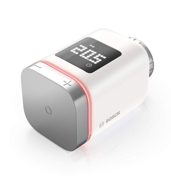 Neben dem Bosch Smart Home Controller, der alle Geräte untereinander vernetzt, werden die Heizkörperthermostate II sowie Tür-/Fensterkontakte II empfohlen. Mit dem Heizkörper-Thermostat II lässt sich ganz einfach via App, per Sprachbefehl oder direkt am Gerät raumgenau die gewünschte Temperatur einstellen. Für ein smartes Zusammenspiel von Heizen und Lüften sorgt der Tür-/Fensterkontakt II: