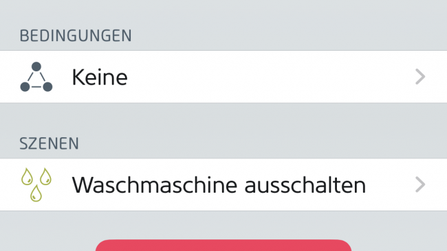 Den Alarm mit einem Druck auf den Eve Button oder einen anderen HomeKit-fähigen Schalter zu beenden, ist nicht vorgesehen. Der Automationsbereich von HomeKit bietet keine entsprechende Schaltaktion an.