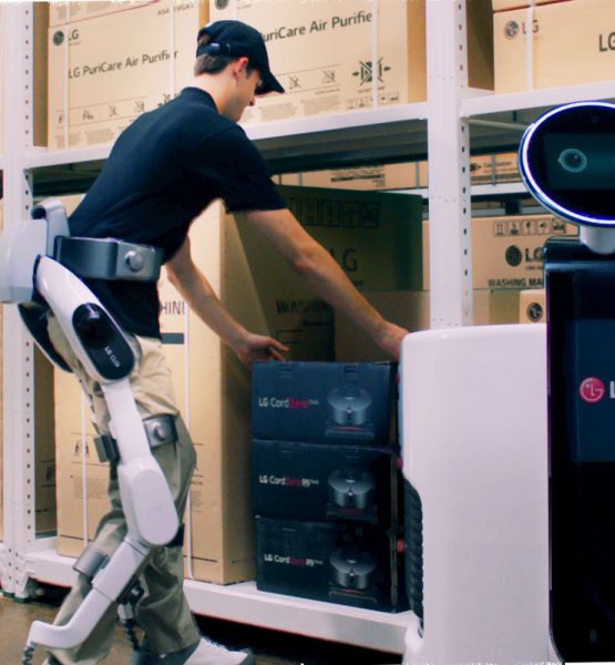 Der Suitbot von LG ist eine Art Exoskelett, den man wie eine Rüstung anlegt. Durch die integrierte AI-Technologie ist sie auch lernfähig. Sie kann sich mit Robotern aus der gleichen Serie vernetzen. Das Skelett hilft ganz konkret dabei die Wirbelsäule bzw. die Glieder zu stabilisieren und die Muskelkraft zu steigern, um das Verletzungs- und Ermüdungsrisiko bei physischer Arbeit zu verringern. Der Mechanismus unterstützt den Träger bei bestimmten Haltungen und Bewegungen, indem er eine Drehung um 50 Grad und eine Beugung um 90 Grad entwickelt. Die Unterstützung schaltet sich ein, sobald man sich in einem Winkel von 65 Grad beugt. Bei aufrechter Position schaltet sich der Roboter dann wieder aus. Der Suitbot kann vier Stunden durcharbeiten und wird mit einer Batterie betrieben, die sich in einer Stunde komplett aufladen lässt. In ersten Tests haben die Bots ihre Tüchtigkeit und ihren besonderen Nutzen unter Beweis gestellt. Sie konnten tatsächlich die Arbeitskraft erhöhen.