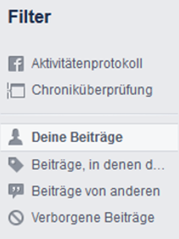 Im nächsten Schritt könnt ihr überblicken, in welchen Beiträgen und Inhalten man markiert oder erwähnt wurde. Diese Funktion ist äußerst nützlich, da man gegebenenfalls sofort agieren kann, sollte jemand den eigenen Namen in für einem nachteiligen Art und Weise erwähnen. Wenn man nun auf “Aktivitätenprotokoll verwenden” klickt, hat man im nächsten Fenster einen Filter auf der linken Seite, auf der man sorgfältig auswählen kann, über welche Beiträge man sich informieren lassen möchte. Außerdem kann man hier sehr gut nachvollziehen, welchen Aktivitäten man selbst als letztes nachgegangen ist.