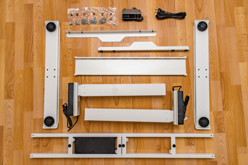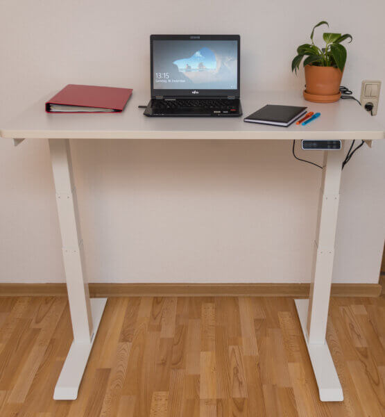 Für die Höhenverstellung verrichten zwei synchronisierte Elektromotoren ihren Dienst. Sie erhalten die Informationen aus der verbundenen Steuereinheit. Die Verkabelung ist unkompliziert, eine Elektronik-Ausbildung ist also nicht nötig. Zudem ist das Stromkabel mit 3 Metern länger als das der Computer-Peripherie. Aufgrund des hohen Gewichtes ist eine zweite Person zur Montage Pflicht. Zudem lässt sich mit ihr entscheiden, ob das Bedienpanel rechts oder links angebracht werden soll.