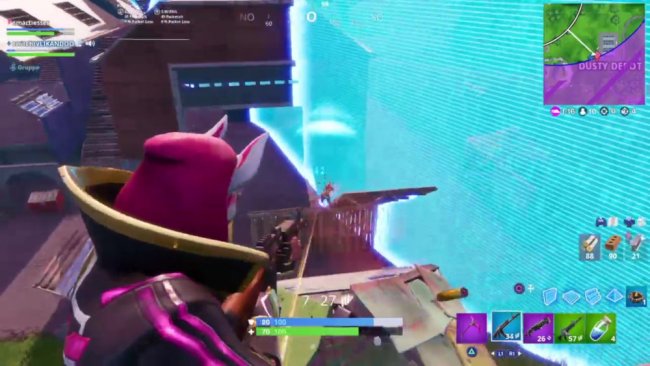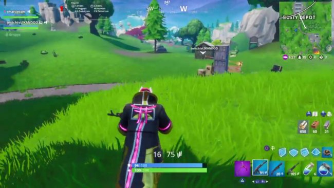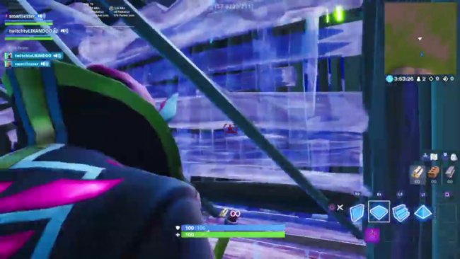 Nach diversen Übungen starten wir in eine wirkliche Runde Fortnite. Likandoo und ich, stellen uns nun 50 anderen Duos und kriegen, um ehrlich zu sein, ziemlich Eins auf die Mütze. Zwar liegt das nicht an likandoo, sondern eher an meinen fehlenden spielerischen Qualitäten, doch lerne ich dabei eine Menge über die Taktiken und Vorgehensweisen während einer Runde Fortnite. So lässt sich das Battle Royale beispielsweise auf zwei verschiedene Arten spielen. Zum einen auf den Sieg ausgerichtet. Das bedeutet, sehr passiv und vorsichtig zu spielen. Zum anderen können wir auf eine möglichst hohe Anzahl Kills spielen und versuchen, Konfrontationen zu suchen. Diese Methode ist laut Daniel die bessere, um sich selbst stetig zu verbessern, da man mit ihr deutlich häufiger in Kämpfe verwickelt wird, was wiederum einen höheren Trainingseffekt erzielt.