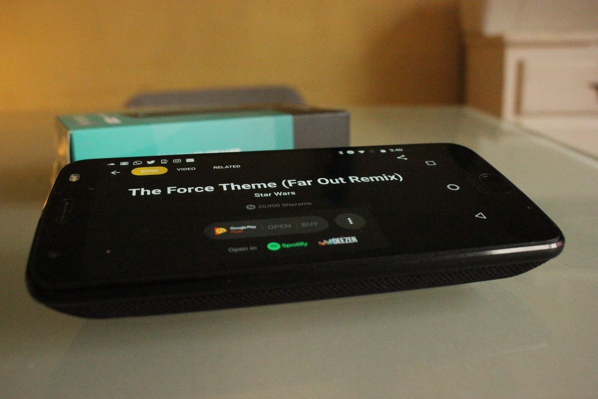 Was die Kompatibilität mit Streaming-Apps angeht, hatte ich zwar keine grundsätzlichen Probleme, aber immer wieder kleine Bugs. Spotify hängt sich auf, wenn man zu viel skipt, Soundcloud spielt Songs weiter, obwohl die App beendet ist. Erst bei Deezer und Shazam läuft bei einem kurzen Blick dann alles, wie es soll. Die Alexa-Moto-App muss man nicht installieren, obwohl der Speaker es immer mal wieder möchte, wenn man ihn an das Moto Z2 Force anklackt.