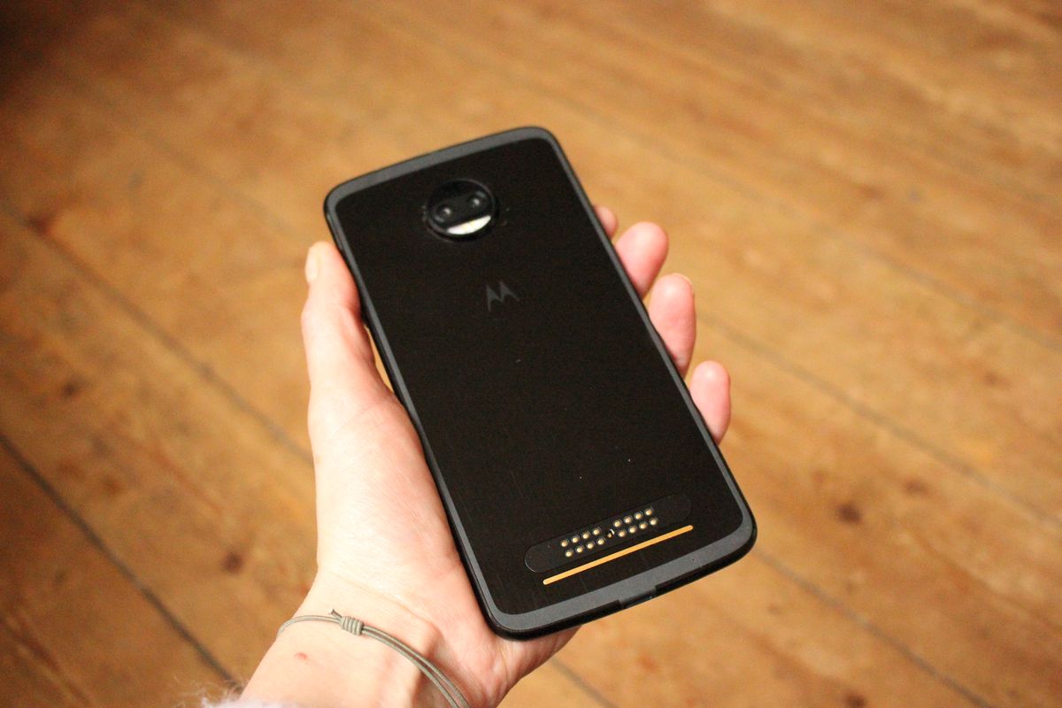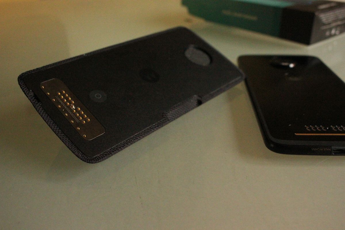 Wie alle anderen Modelle der Z-Reihe bietet das Moto Z2 Force auf seiner Rückseite eine Schnittstelle für mittlerweile ein Dutzend verschiedene Hardware-Erweiterungen. Diese sogenannten Moto Mods verbinden sich über magnetische Pins mit dem Smartphone. Dazu braucht es nur einen „Klack“. Das funktioniert so ähnlich wie beim MacSafe-Stromstecker und Apple MacBooks – man spürt immer ein bisschen, dass die sich gegenseitig wollen.