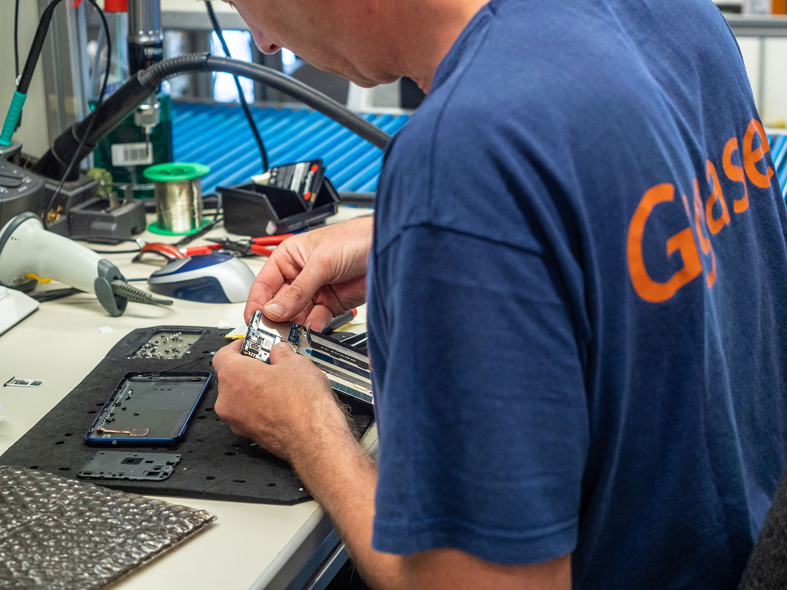 Für Verbraucher am praktischsten an der deutschen Produktion ist aber, dass die Gigaset das GS185 auch in Bocholt repariert. Eine Etage unter der Smartphone-Fertigung beseitigen Beschäftigte Displaybrüche und andere Schäden innerhalb eines Tages. Dadurch müssen Kunden nicht wochenlang auf ein Ergebnis warten. Zudem erhalten sie ihr eigenes Gerät und kein Austauschgerät zurück, sodass alle Einstellungen und installierten Apps dableiben, wo sie waren.