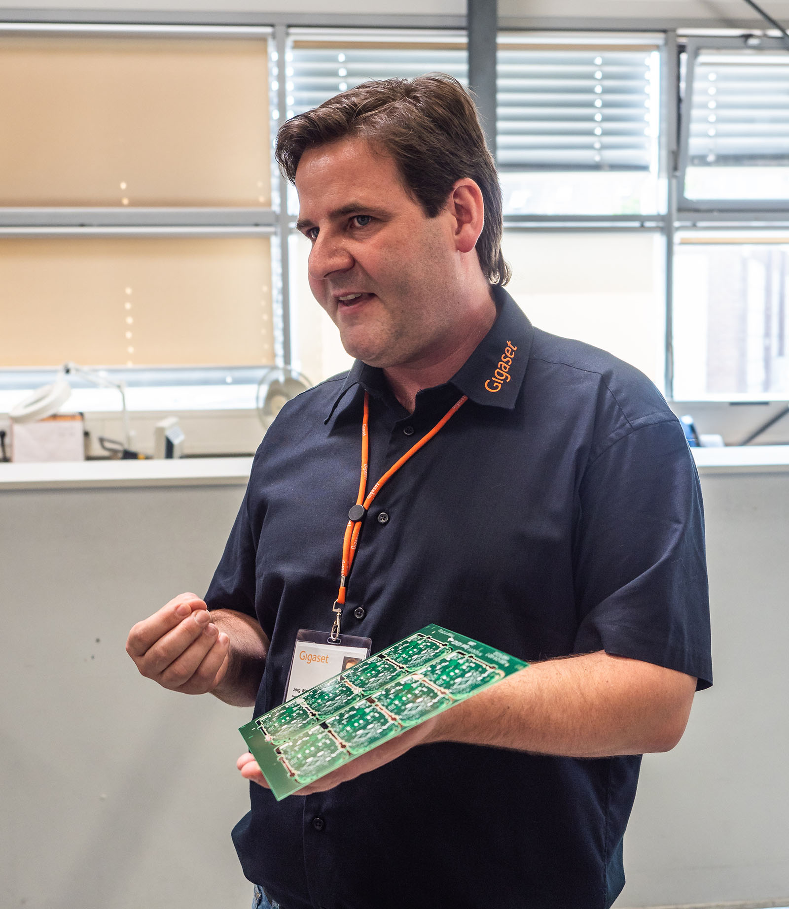 Die Voraussetzungen für das Siegel „made in Germany“ erfüllt das Gigaset GS185 dennoch. „Über 60 Prozent der Wertschöpfung rund um das GS185 entstehen in Deutschland. Dazu zählt zum Beispiel auch das äußere Design des Geräts und die Konzeption des Produkts, also, welche Funktionen es besitzen soll“ erklärt Jörg Wißing, Leiter Automatisierung bei Gigaset in Bocholt.