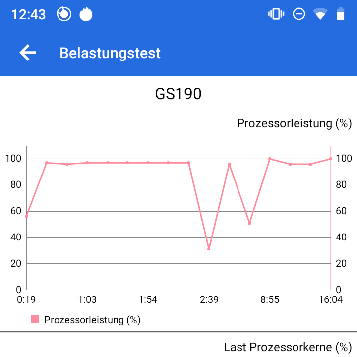 Das A40 gibt es bereits für rund 180 Euro und kommt laut AnTuTu-Website auf einen Gesamtscore von 103163 Punkten. Der Wert ist damit zwar nicht doppelt so hoch, aber auch nicht weit davon entfernt. Mit anderen Worten: Das Gigaset steht im Performance-Ranking ziemlich weit unten. Ganz oben dominiert übrigens derzeit das ROG Phone 2 mit 396813 Punkten (und kostet rund 800 Euro). Mit der Auswertung des AnTuTu-Belastungstest wurde außerdem deutlich, dass die Leistung des Prozessors gleich zweimal stark eingebrochen ist.