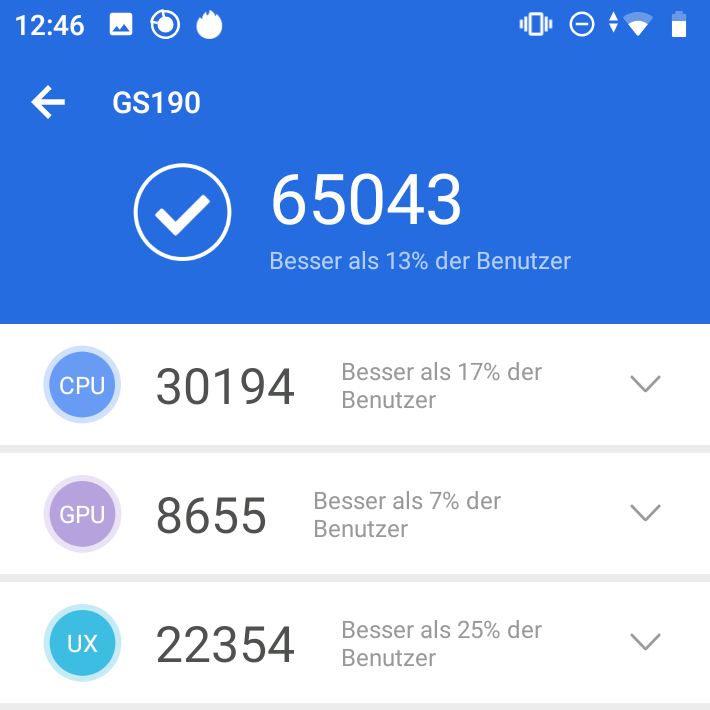 Mit den Wischgesten von Android Pie bin ich auch nach mehrwöchiger Nutzung nicht warm geworden – das hat aber herzlich wenig mit dem Gerät an sich zu tun. Dafür aber die Performance, die für diesen Preis in Ordnung, für meinen Geschmack jedoch etwas zu gering ist. Im AnTuTu-Benchmark-Test konnte mein Gerät lediglich 65043 Punkte erzielen. Die neue Galaxy A-Serie von Samsung erzielt durchweg einen deutlich besseren Wert.