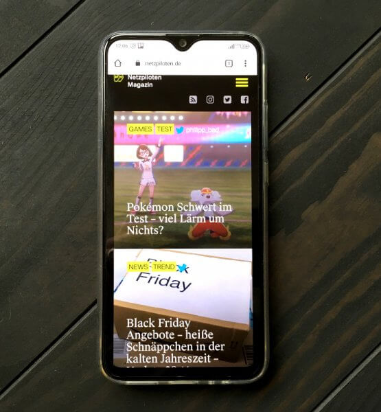 Das 6,3 Zoll große FHD+ Display kommt mit einer Auflösung von 2340 x 1080 Pixel immerhin auf 409 PPI. Das ist für gerade mal 269 Euro ein echter Hingucker. Beim Surfen, Lesen oder Videos schauen gefällt mir das Display des GS290 im Test sehr gut. So ist es sehr angenehm für die Augen und bietet ordentlich Platz. Das randlose Design und die Tropfennotch am oberen Bildschirmrand verleihen dem Display außerdem einen weiteren WOW-Effekt.