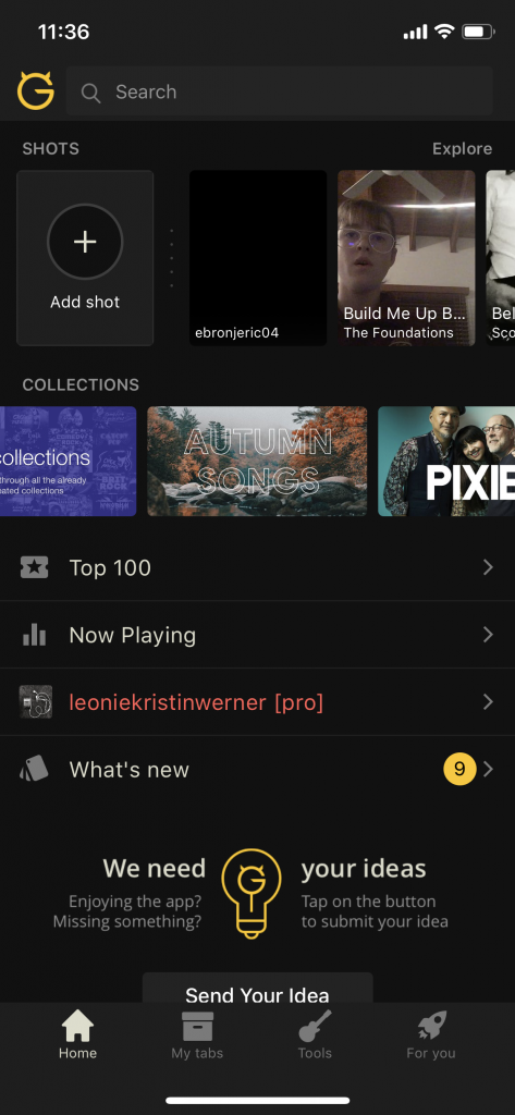 Ultimate Guitar Tabs fing vor Jahren als Webseite an, auf der Gitarren-Fans eigenständig Akkorde von Liedern erstellen und hochladen konnten. Inzwischen gibt es auch hier ein kostenpflichtiges Abo-Modell und viele neue Funktionen. Allein auf der Startseite der App lässt sich erahnen, was hier alles getan werden kann. Besonders super finde ich hier die große Community, die eigene Lernfortschritte in Instagram-Story-Ähnlichem Design direkt mit anderen Musikfans teilen können. Daraus ergibt sich außerdem eine Vielzahl an verschiedenen Interpretationen und Versionen aller Songs, die sich in dieser riesigen Datenbank befinden. Eigentlich gibt es fast kein Lied, dessen Notenblätter nicht schon von der Community hochgeladen wurden. Die Möglichkeiten für den Gitarrenunterricht online sind hier also nahezu unbegrenzt.